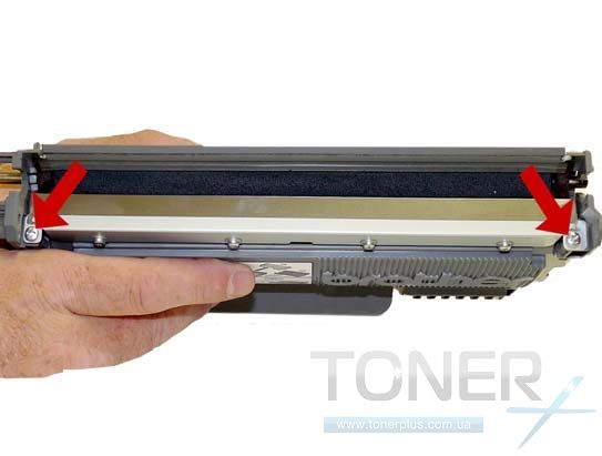 Открутите 2 винта и снимите дозирующее лезвие. Очистите его при помощи ватного диска смоченного в изопропиловом спирте.