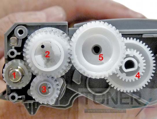 На картридже TN-2235 шестерня имеет 3 лепестка, а на картридже TN-2275 шестерня имеет 2 лепестка.