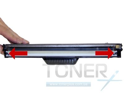 Извлеките вал первичного заряда. Очистите его ватным диском от остатков тонера. Извлеките фотобарабан из картриджа