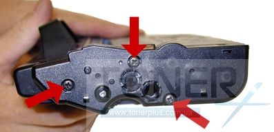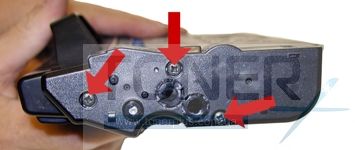 С правой стороны картриджа на боковой крышке открутите три винта. С левой стороны картриджа также открутите три винта.